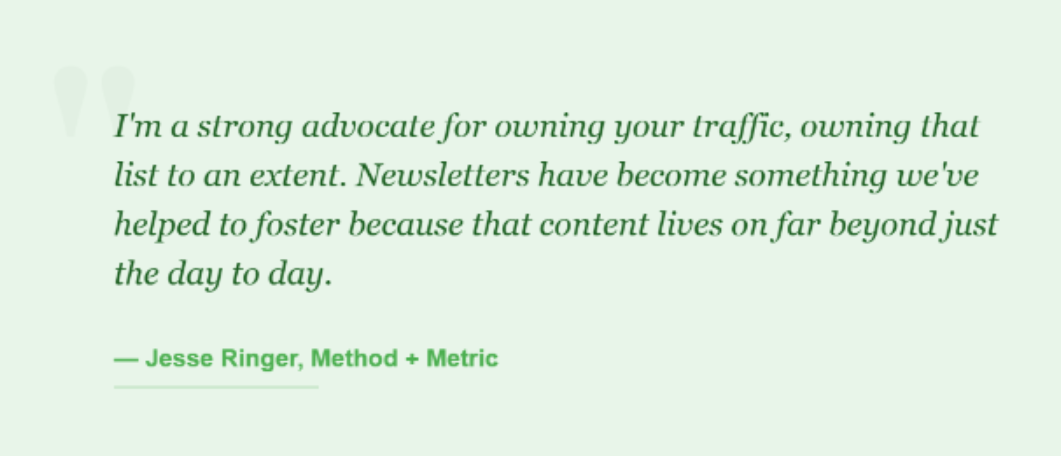 As Jesse also noted, “Newsletters have become something that we’ve also helped to foster because that content lives on far beyond just, you know, just the day to day.”